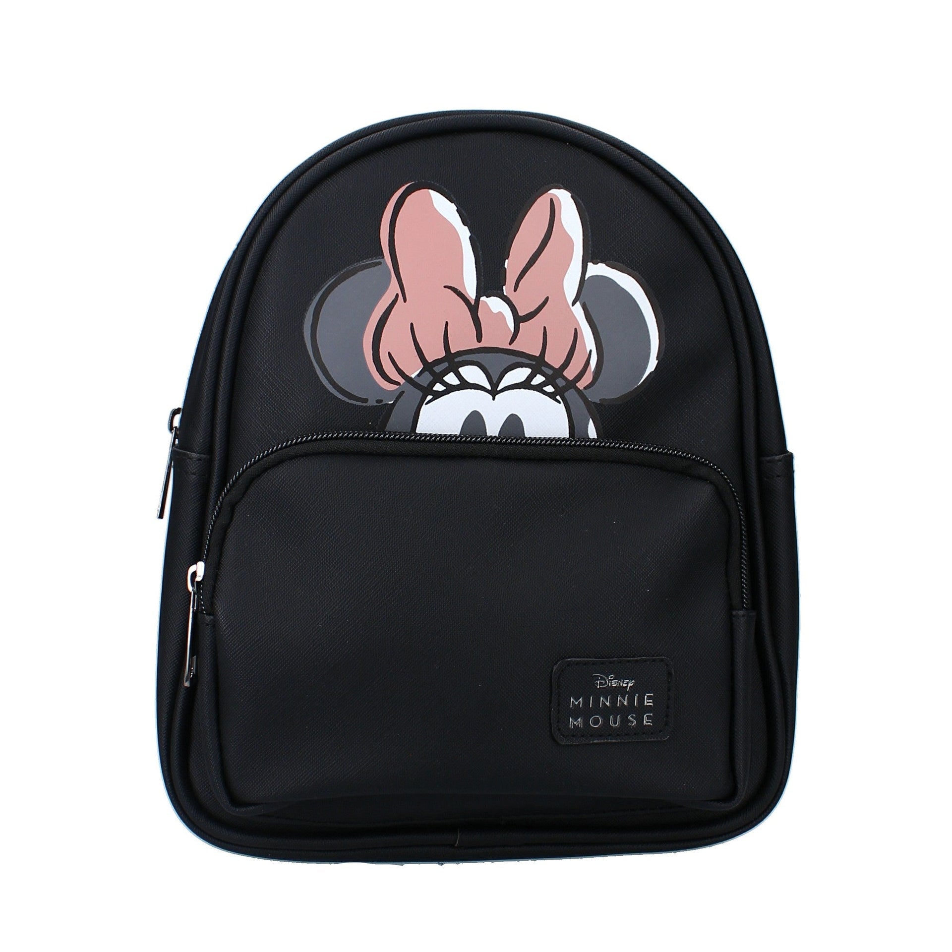 - Ce sac à dos Minnie Mouse de la collection « Sweet About Me » est un article parfait pour tous ceux qui aiment ce personnage de dessin animé. La jolie tête de Minnie Mouse est représentée en grand et fait de ce sac un véritable accroche-regard. Le sac est en cuir PU de couleur noire et la fermeture éclair est également ornée de détails noirs. Les bretelles du sac sont réglables en longueur. En outre, le sac est doté d'un compartiment principal qui permet de ranger certains articles.