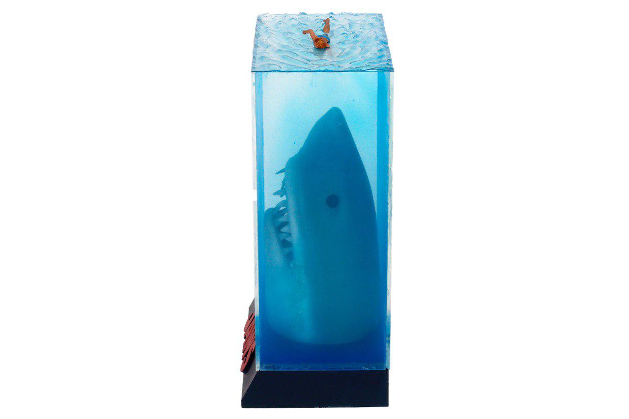 C'est une affiche de film. Non, c'est une statue. En fait, c'est les deux ! Inspirée de l'affiche emblématique du film Jaws de 1975, cette statue d'affiche de film Jaws mesure environ 30 cm de haut, 20 cm de large et 13 cm de long. Très détaillé, il présente un aspect bleu translucide avec Bruce le requin sur le point d'attaquer le nageur inattendu au sommet.