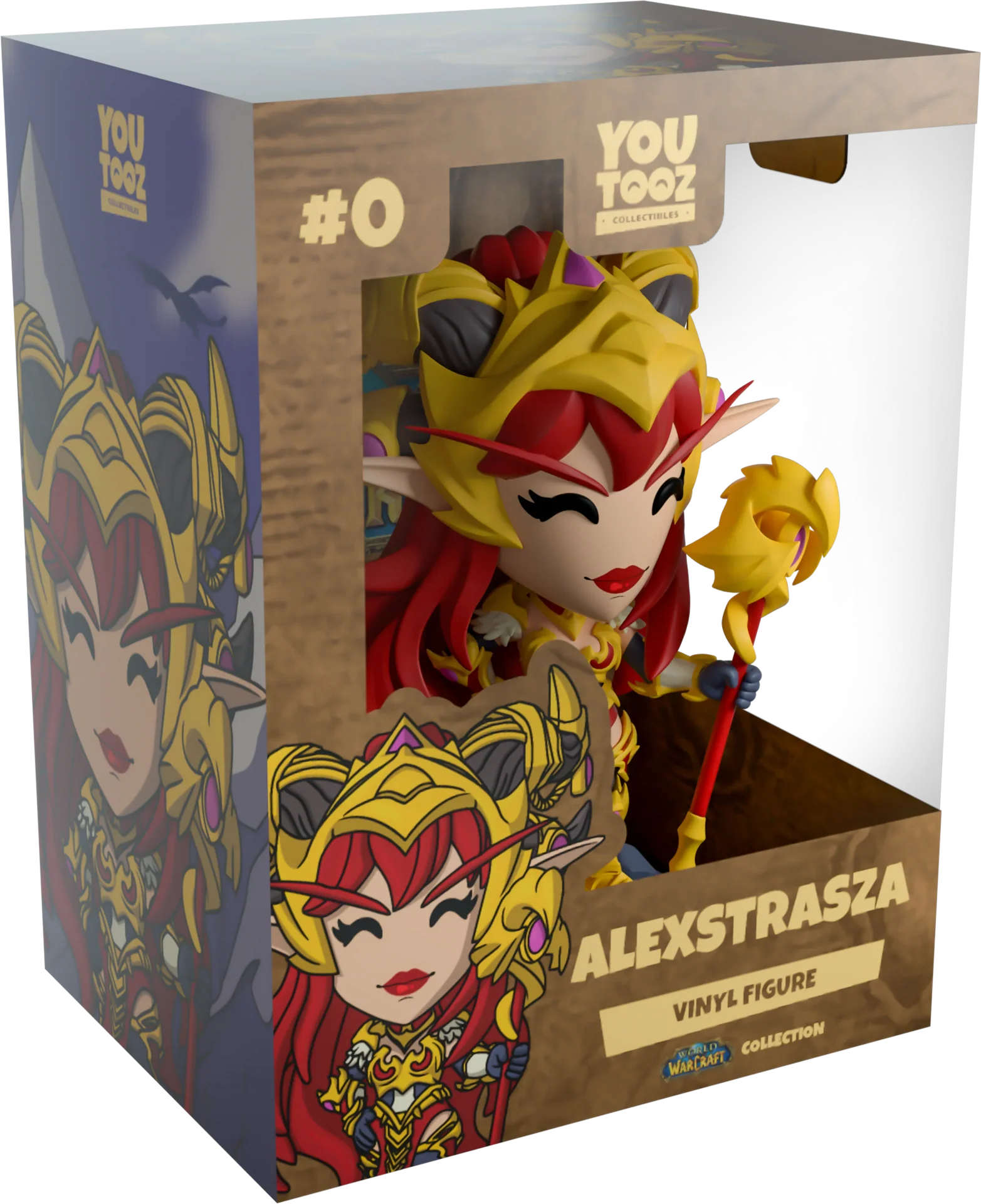 La Reine des dragons est là, ses ailes sont peut-être rentrées mais elle est quand même prête à tout ! Mesurant 5,1 pouces de hauteur, cette reine est vêtue d'une armure jaune et est prête à se battre alors qu'elle se tient sur une base rocheuse avec des bottes complexes parmi les décombres. Sa main gauche tient un bâton rouge surmonté d'un mini-dragon jaune serrant son sommet tandis que son bras droit repose impertinemment sur sa hanche. Avec un tissu rouge et jaune flottant au vent, les longs cheveux roux d'Alexstrasza flottent majestueusement derrière elle et sont accessoirisés d'une armure jaune assortie autour d'une épaisse tresse. Avec des cornes de dragon lourdement blindées s'étendant sur les côtés de sa tête, d'épaisses lèvres rouges sourient sur son visage confiant tandis que de longs sourcils et des oreilles pointues dépassent sur les côtés. L'extérieur de son emballage a été illustré pour mettre en valeur une montagne géante au loin avec des dragons volant autour de son sommet. L'intérieur présente la carte emblématique du royaume d'Azeroth qui se poursuit sur la pochette de protection tandis que sa silhouette est visible à travers la grande fenêtre transparente située sur le devant de l'emballage. Cet objet de collection est livré dans une pochette extérieure de protection mate en relief et dans un protecteur en plastique de taille personnalisée pour une protection maximale pendant l'expédition.