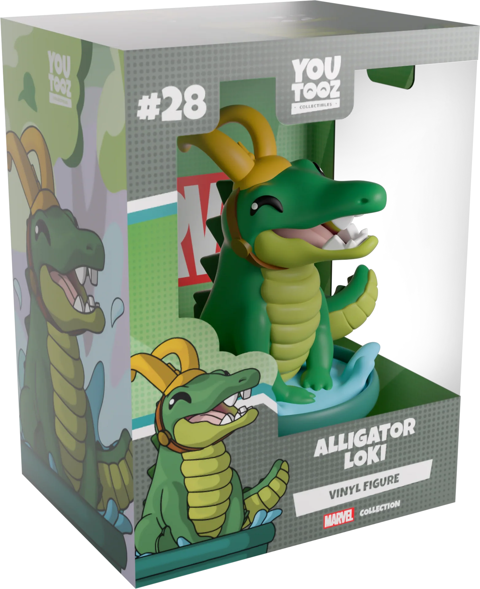 Attendez, c'est aussi un Loki ? Assis dans une piscine d'eau verte peu profonde à 10,7 cm de haut avec son visage s'ouvrant sur un sourire édenté sous des yeux brillants, il porte un casque jaune avec des cornes incurvées attachées à sa tête. Avec un dessous segmenté vert clair, de grosses pointes courent le long de son dos vert foncé et sur la queue épaisse qui s'enroule autour de son devant. L'extérieur de son emballage le voit presque entièrement immergé dans l'eau au milieu d'une forêt tranquille, tandis que l'intérieur est rempli de faisceaux de lumière verte. La pochette de protection vous emmène ensuite plus loin dans la belle forêt car sa silhouette peut être vue à travers la grande fenêtre transparente à l'avant de l'emballage. Cet objet de collection est livré dans une pochette extérieure protectrice mate et gaufrée et un protecteur en plastique de taille personnalisée pour une protection maximale pendant l'expédition.À propos d'Alligator Loki