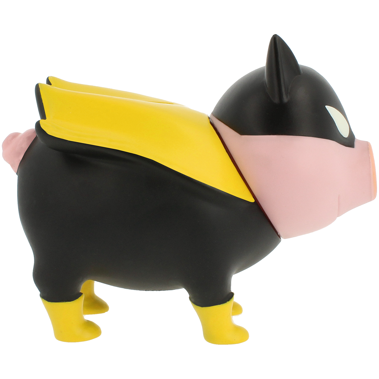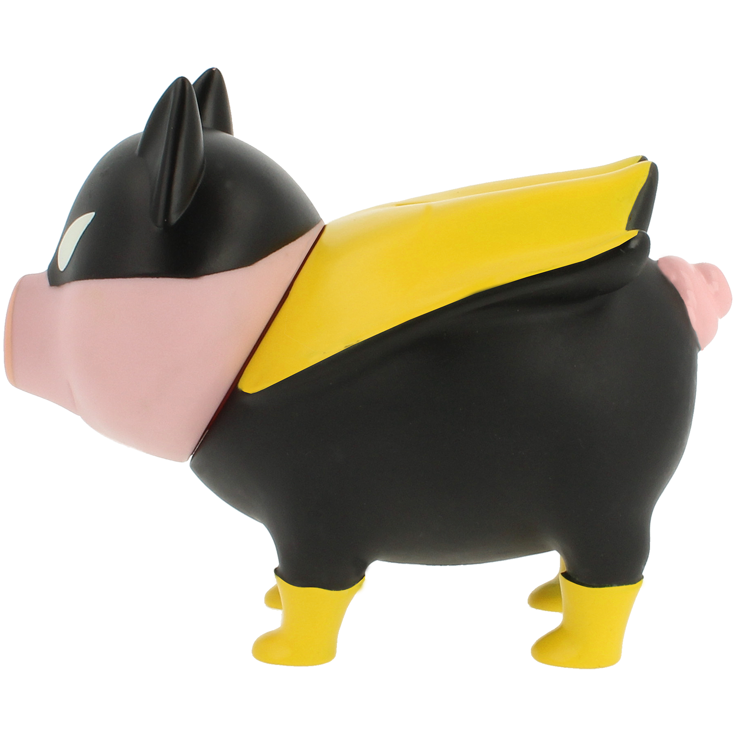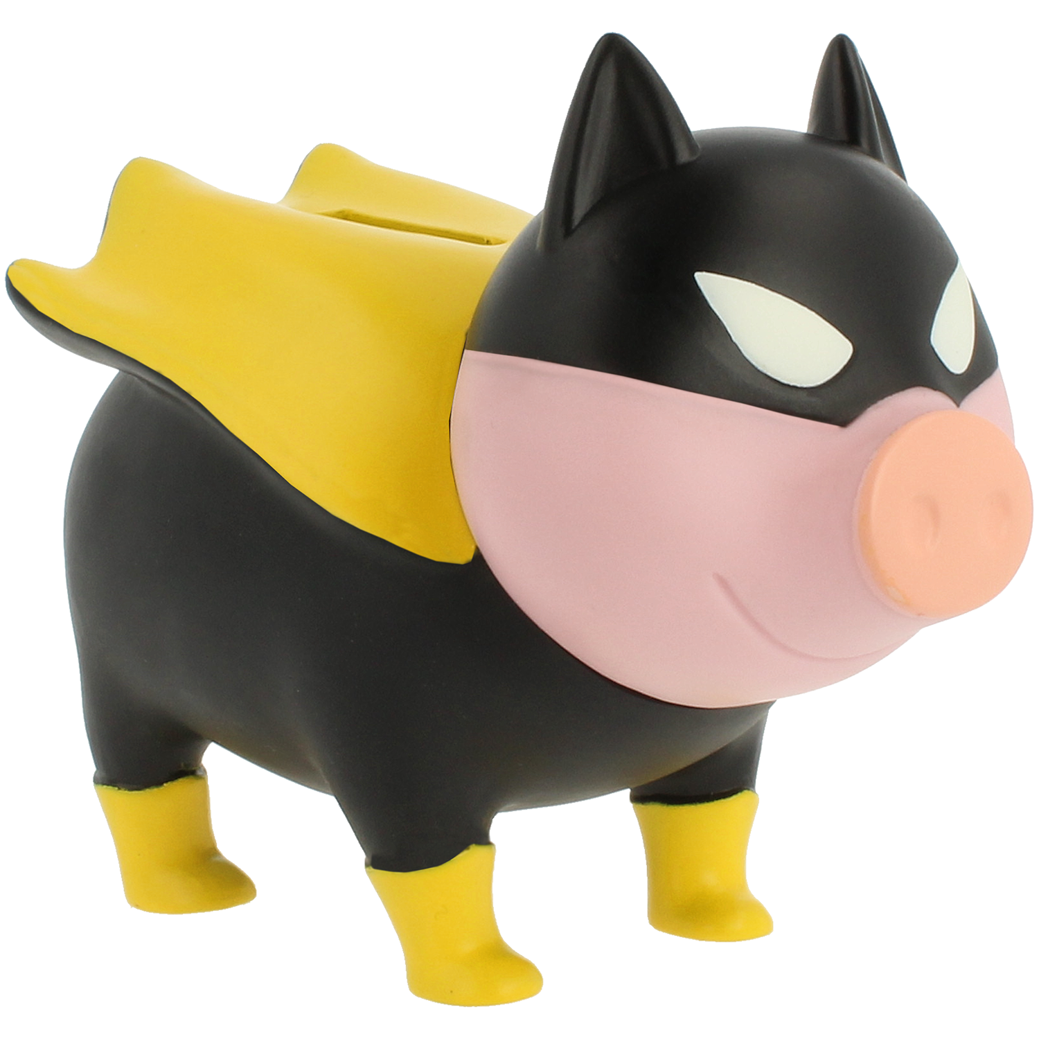Être un héros cochon n'est pas normal de nos jours. Pour cette raison, les vrais héros méritent une vraie récompense. Cette tirelire protège vos pièces avec un courage héroïque de jour comme de nuit. Notre héros BatCochon est également heureux quand on lui place de l'argent après une mission contre des super vilains.