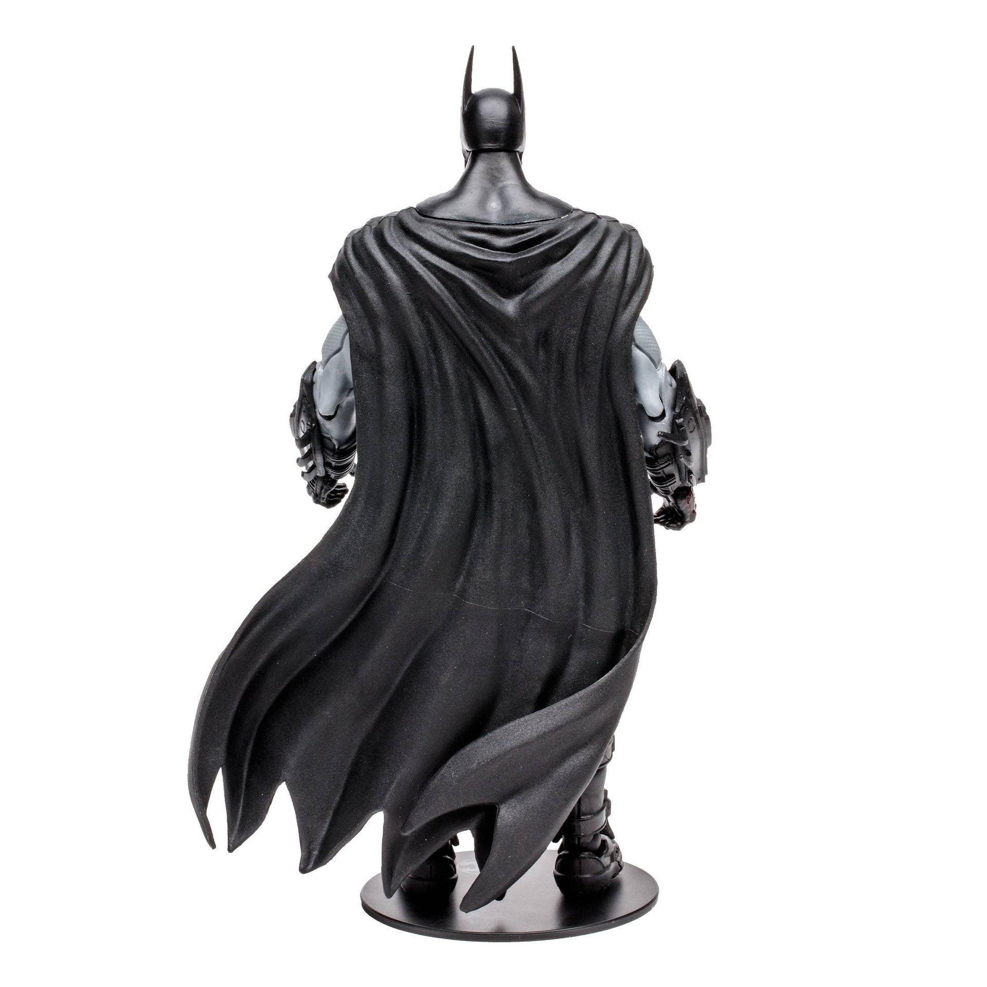 - Batman est représenté dans sa tenue monochrome inspirée du jeu vidéo Batman : Arkham City.