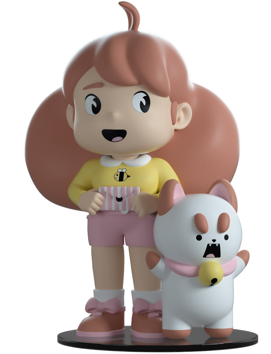 Bee et PuppyCat ont reçu leur prochaine mission et se dirigent directement vers Youtooz pour leurs débuts ! L'abeille mesure 4,1 pouces de hauteur avec une courte frange brune balayée sur le côté alors qu'une courte touffe de cheveux dépasse du milieu de sa tête et le reste tombe en un gros paquet rond dans son dos. Les yeux brillants et la bouche ouverte, elle tient à deux mains une enveloppe de travail temporaire à rayures roses et blanches alors qu'elle porte une chemise jaune à manches longues avec un col blanc et un imprimé abeille sur le devant. Sa tenue est complète avec un short rose court et des chaussettes blanches qui dépassent des chaussures marron à lacets roses. À ses côtés se trouve le PuppyCat fidèle, fidèle et absolument jamais grossier, qui se tient debout avec ses pattes brunes levées haut et laisse échapper un cri de colère d'une bouche dentée acérée alors que ses sourcils épais s'abaissent en un froncement de sourcils. L'extérieur de leur emballage montre un canapé bleu confortable avec un tapis posé sur le dos alors qu'il est assis devant un mur à pois roses. Alors que l'intérieur est un motif répétitif d'aubergines colorées sur fond blanc, celui-ci s'étend ensuite sur la pochette de protection qui montre parfaitement leur silhouette à travers la grande fenêtre d'affichage transparente située à l'avant. Cet objet de collection est livré dans une pochette extérieure de protection mate en relief et un protecteur en plastique de taille personnalisée pour une protection maximale pendant l'expédition.