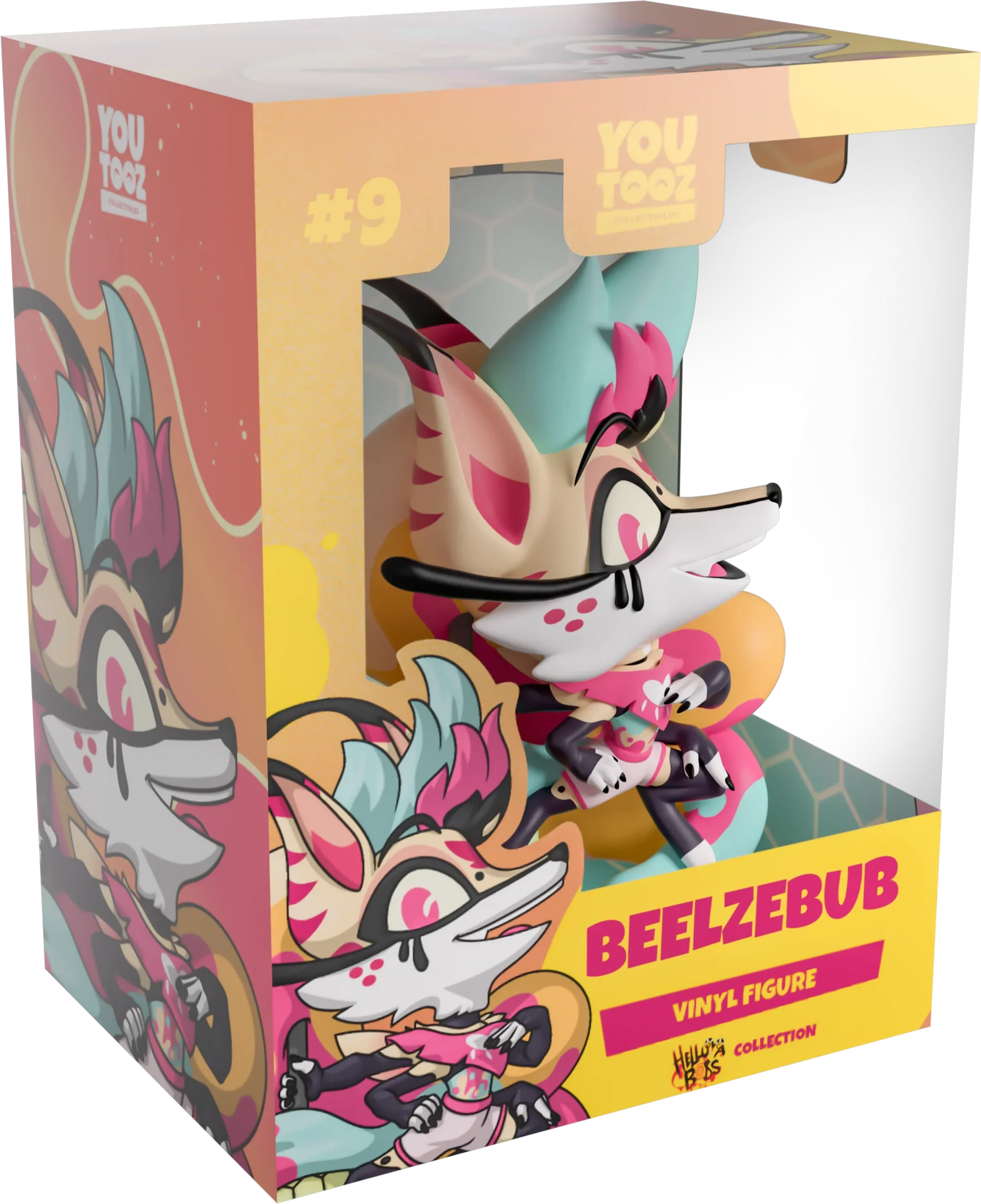 Beelzebub est arrivé chez Youtooz pour organiser la fête la plus spectaculaire du monde, et tu es invité ! Se pavanant à 11,7 cm de hauteur avec un grand sourire s'étendant sur son visage de renard blanc avec des taches d'encre brillantes sur les joues et de longs cils qui s'étendent sur les côtés, des cils turquoise et rose jaillissent d'entre deux oreilles bouclées pour descendre dans son dos en taches colorées qui s'enroulent autour d'une boule à motif nid d'abeille. Toujours la vie absolue de la fête, Beelzebub porte un haut coloré qui correspond à sa queue et a un col pointu avec un cœur sur la poitrine avec un short court rose. L'extérieur de son emballage voit leur silhouette légère et galbée sur un fond orange foncé, tandis que l'intérieur présente une énorme boule disco en nid d'abeille qui brille sur les murs lumineux. La pochette de protection est ensuite décorée de rayures jaunes diagonales et imprimée du logo « Helluva Boss » car leur silhouette peut être vue à travers la grande fenêtre d'affichage transparente sur le devant. Cet objet de collection est livré dans une pochette extérieure mate, gaufrée et protectrice et dans un protecteur en plastique de taille personnalisée pour une protection maximale pendant l'expédition.