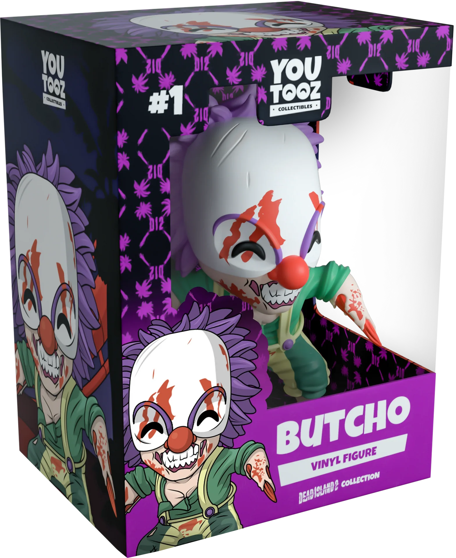 Vous pensez que je peux vous aider ? Butcho le clown découpe et massacre une figurine miniature ! Butcho mesure 10,9 cm et est vêtu d'une tenue de clown échevelée jaune et verte. Ses pieds sont nus, avec une couche de sang sur le bas. Son visage est partiellement recouvert d'un masque de clown blanc avec des cheveux violets dépassant de l'arrière du crâne. Son sourire charnu et denté scintille sous son gros nez rouge. Butcho se tient prêt avec ses bras en pointe de chair écartés. La boîte de présentation vitrée a été illustrée pour présenter un parc d'attractions au crépuscule avec des flaques de sang sur le sol. L'intérieur de la boîte présente le logo Dead Island 2 sur un fond de couleur dégradé. La pochette de protection montre un coucher de soleil depuis la vue au-dessus du panneau Hollywood, avec l'océan s'étendant au loin. Cet objet de collection est livré dans une pochette extérieure mate, gaufrée et protectrice et un protecteur en plastique de taille personnalisée pour une protection maximale pendant l'expédition.