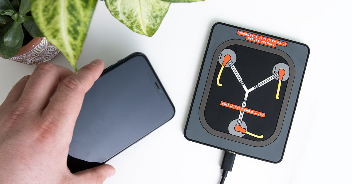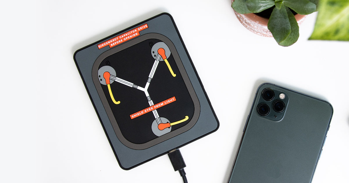 Doc Brown et Marty nous ont raconté leurs aventures de voyage dans le temps et nous avons réussi à ramener ce chargeur sans fil génial ! Avec une charge ultra-rapide de 10 W et une base en caoutchouc antidérapante, sur le bureau, la table de chevet ou dans de salon parfait pour tout fan de Back To The Future.