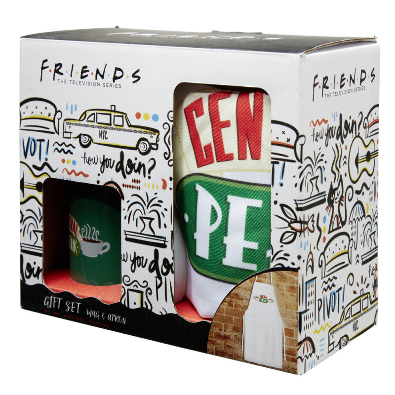 Coffret comprenant une tasse et un tablier à l'effigie de la série FRIENDS.