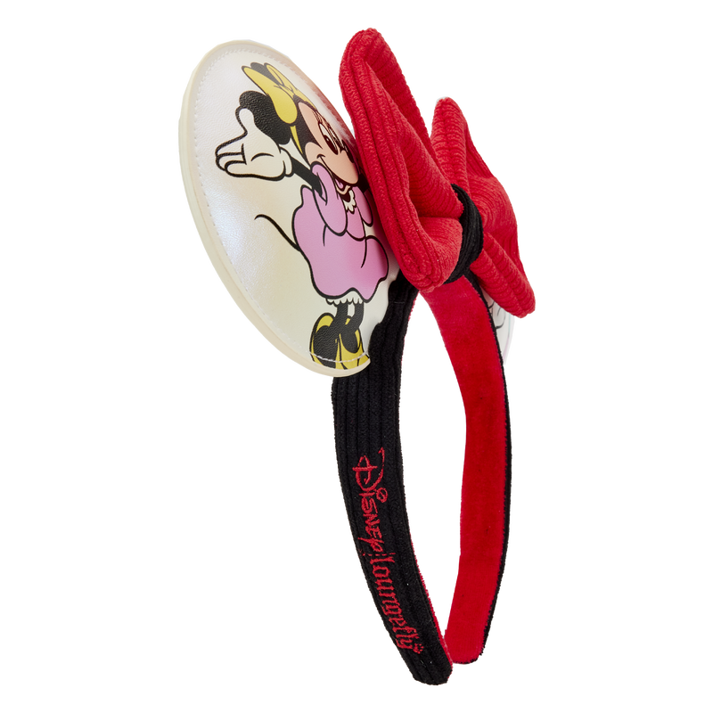Hip Hip Hourra! Emportez la célébration sur votre chemin. Préparez-vous pour toute occasion festive avec notre mini sac à dos Loungefly Disney100 avec support d'oreille entièrement imprimé. L'imprimé intégral, sur du cuir végétalien nacré, présente Mickey Mouse, Minnie Mouse, Donald Duck, Daisy Duck, Pluto et Dingo de Disney, et ils sont prêts à passer un moment amusant. Vous pouvez également enfiler votre propre bandeau spécial, qui comprend l'imprimé intégral sur les oreilles appliquées d'un côté, et Mickey Mouse et Minnie Mouse de Disney de l'autre côté. Un nœud amovible en velours côtelé rouge, au milieu, ajoute une touche festive. La poche circulaire découpée sur le devant est un endroit pour sécuriser votre bandeau et maintenir les festivités avec un look sans couture. Les couleurs vives sur les bretelles et les bordures font ressortir l'imprimé. Rejoignez le défilé et transformez les sorties quotidiennes en une raison de célébrer.