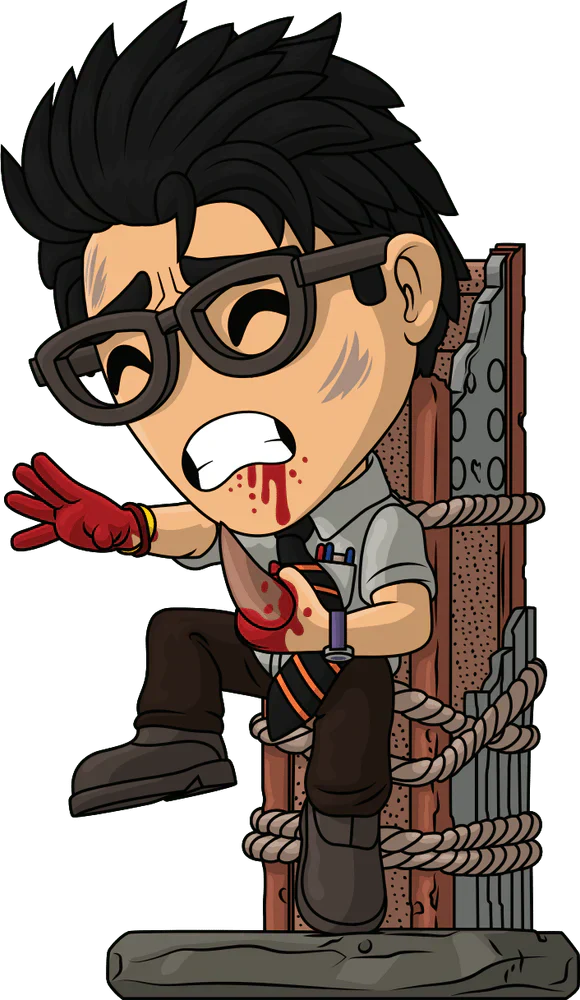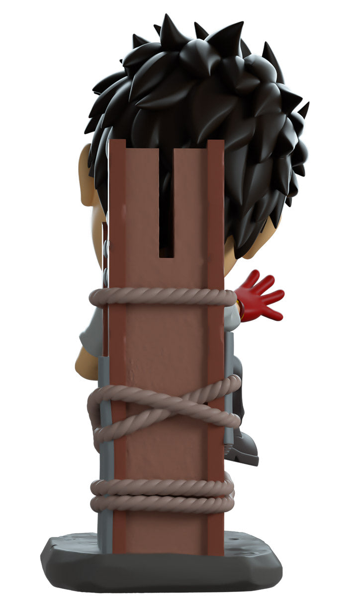 Nous avons attrapé Dwight dans notre piège pour nous assurer qu'il lance son Youtooz ! Quoi, ce n'est pas aussi terrible que ça en a l'air, je vous le jure ! Suspendu à 12,5 cm de hauteur et tendant une main ensanglantée en suppliant alors qu'il saisit la grosse pointe qui dépasse de sa poitrine à cause du piège horrible dans lequel il a été violemment forcé, du sang gicle de ses dents serrées tandis que son visage dépeint une pure douleur. Avec ses cheveux châtain foncé balayés en arrière et portant des lunettes à monture noire, sa tenue se compose d'une chemise grise à manches courtes, des stylos dans la poche de sa chemise, un pantalon gris foncé et des bottes marron. L'extérieur de son emballage montre Dwight en train de lutter contre le piège dans lequel il a été mis. Alors que l'intérieur est une forêt en silhouette noire avec une brume rouge et bleue brillante et le logo blanc « Dead by Daylight » à l'arrière, ce motif sinistre se poursuit ensuite sur la pochette de protection avec des arbres sombres qui l'entourent complètement tandis que sa silhouette peut être vue à travers la grande fenêtre transparente à l'avant. Cet objet de collection est livré dans une pochette extérieure protectrice mate et gaufrée et un protecteur en plastique de taille personnalisée pour une protection maximale pendant l'expédition.