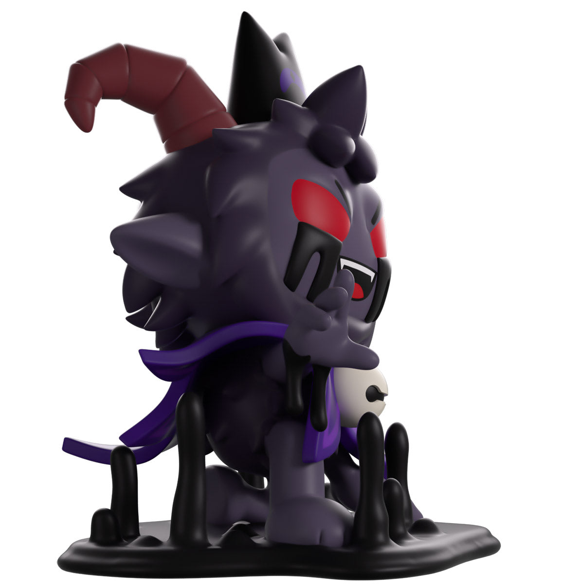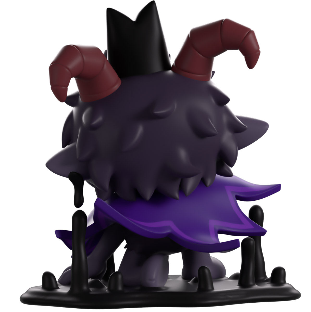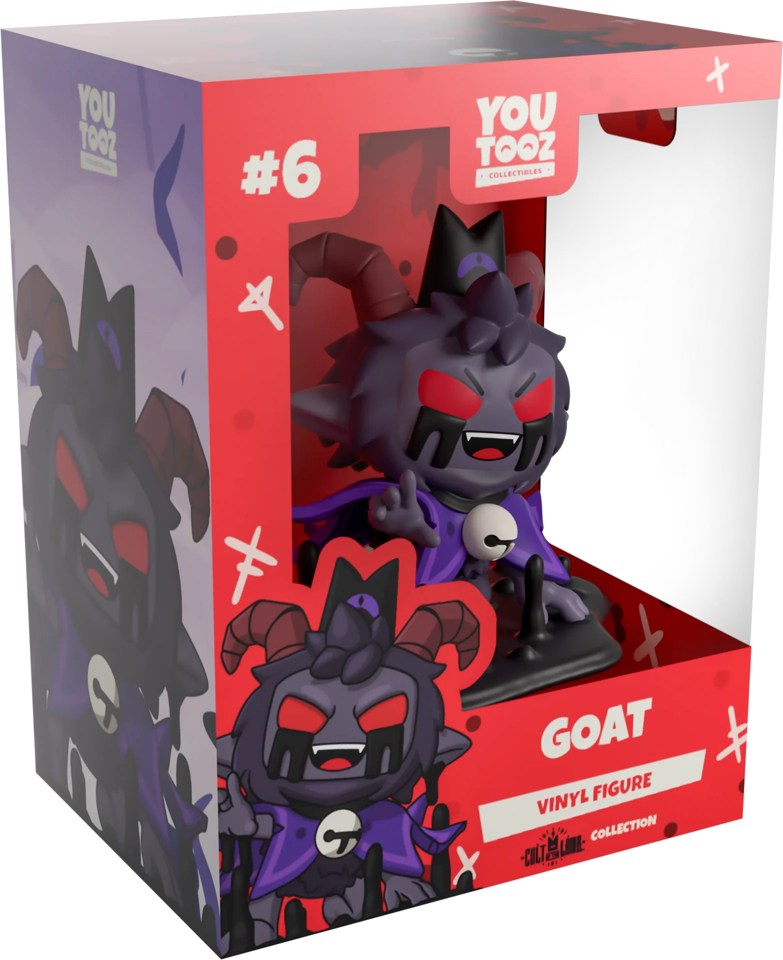 S'occuper de son troupeau peut être difficile et parfois, on a besoin d'un coup de main ! Mais pas d'inquiétude, la Chèvre a entendu vos bêlements et est là pour vous aider avec ses débuts sur Youtooz ! Agenouillées, du haut de leurs 9,7 cm, elles émergent d'une flaque de matière noire qui s'élève en épaisses vrilles autour d'elles. Elles tiennent une main tendue, l'autre posée au sol près de leurs pieds, tandis qu'une cape violette pointue flotte sur leur corps. Avec un sourire maléfique et des traits noirs descendant de leurs yeux rouge vif, elles portent une couronne violette entre deux cornes brunes bouclées et une clochette argentée au cou. L'extérieur de leur emballage représente une statue d'Agneau dégoulinant de matière noire. L'intérieur est une tache de sang éclatante, parsemée de symboles, sur un fond blanc cassé. La pochette de protection reprend cette teinte blanc cassé, avec des croix et des chaînes fixées au sol et tirées vers le ciel, leur silhouette étant visible à travers la grande fenêtre transparente sur le devant de l'emballage. Cet objet de collection a été conçu en collaboration avec @therealracckun et est livré dans une pochette de protection mate et gaufrée, ainsi que dans une protection plastique sur mesure pour une protection optimale pendant le transport.