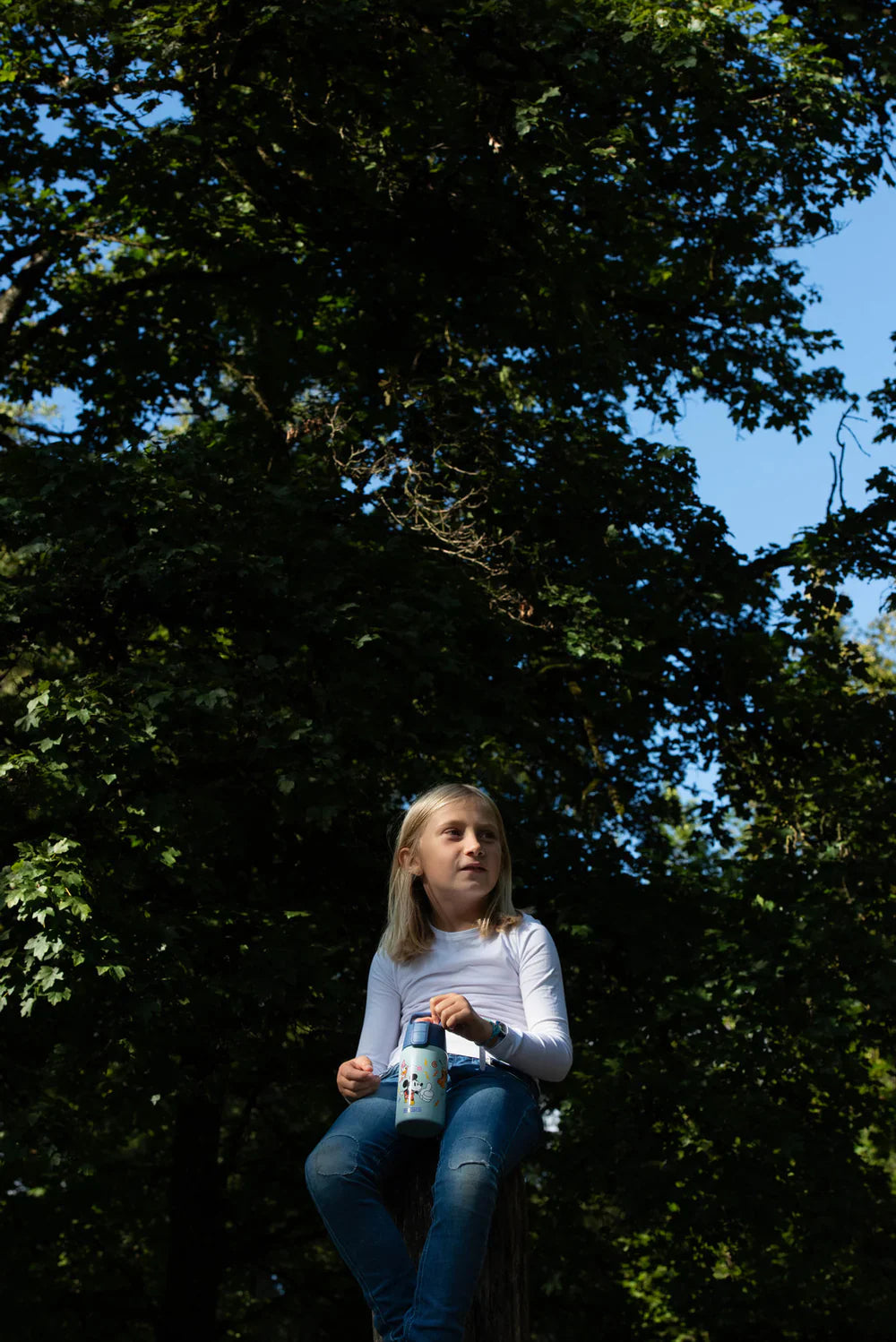 La gourde Shield One à simple paroi en acier inoxydable pour enfants est exempte de substances nocives et permet de boire confortablement d'une seule main.