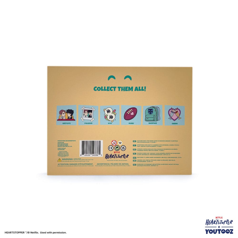 Le spectacle le plus mignon et le plus réconfortant, Heartstopper, revient avec cette boîte collector d'épingles en émail en édition limitée ! Dans cette boîte se trouve une variété de 6 épingles en émail différentes mesurant chacune 2 pouces de hauteur avec une finition brillante et de haute qualité. La collection comprend un ballon de rugby, 2 milkshakes devant un cœur, un sac à dos de la marque de l'école, 2 bulles de conversation disant bonjour, la première rencontre de Nick et Charlie, et une photo polaroïd de Nick et Charlie ! Mettez-les comme décoration sur un tableau en liège ou montrez-les sur votre sac fourre-tout, sac à dos, sac banane, veste – où que vous soyez !- Conçu et fabriqué par Youtooz.
