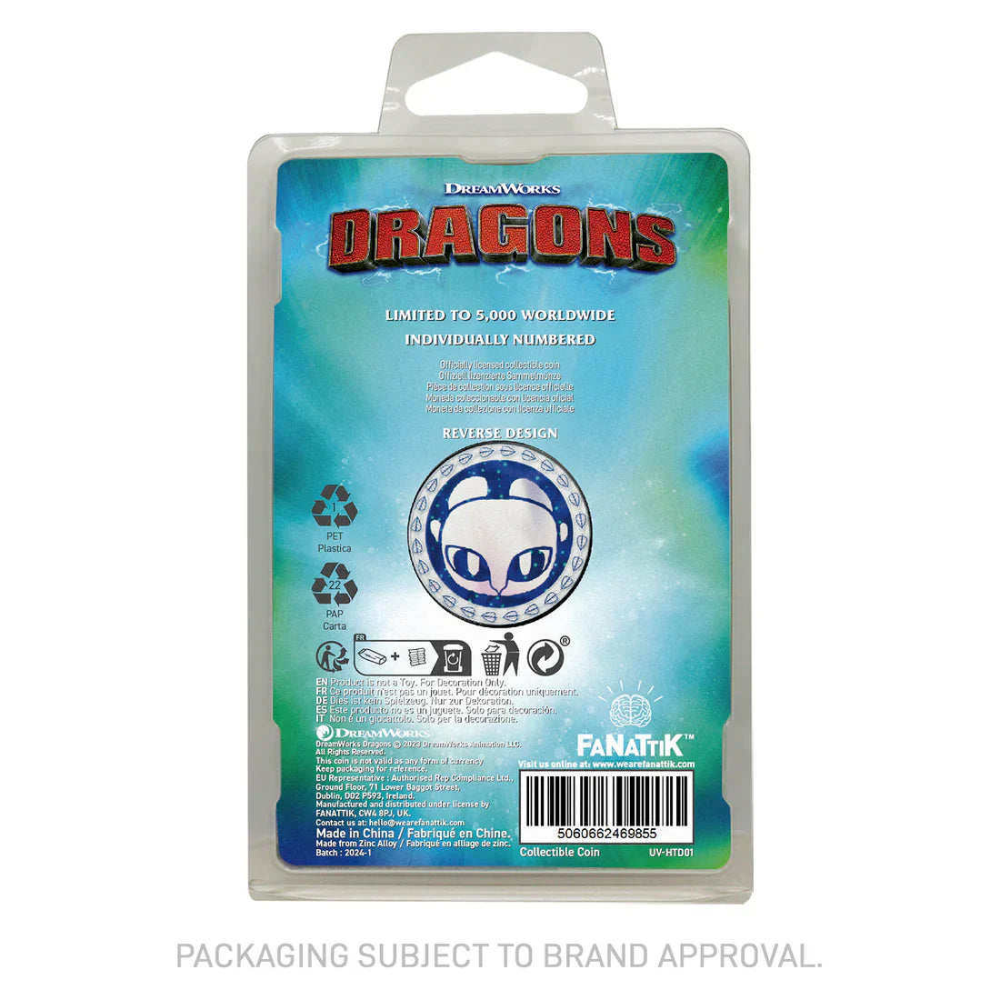 Hautement intelligent, férocement loyal et férocement aimant", oui, c'est notre dragon préféré ! Cette pièce double face fortement gaufrée est à l'effigie de Krokmou.