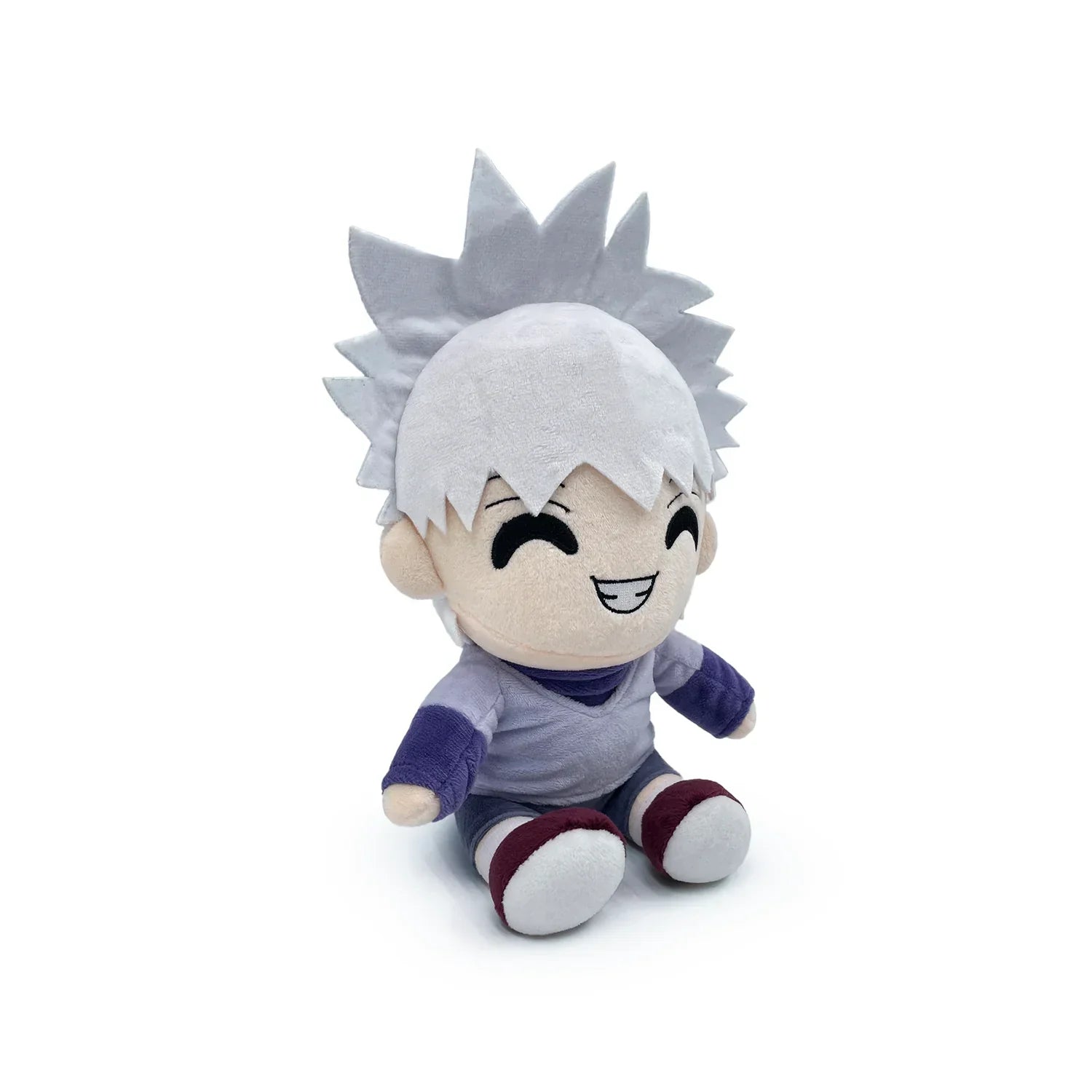 Killua fait son retour sur Youtooz pour être le meilleur ami et garder un œil sur Gon avec ses adorables débuts en peluche ! À 9 pouces de hauteur et assis avec ses pieds projetés vers l'avant, un gâchis de blond blanc gris est assis sur sa tête alors qu'un sourire à pleines dents brille sur son visage ravi. Vêtu d'une simple chemise légère à col en V sur une longue manche bleue avec un col roulé, son short gris mène à des baskets violettes bicolores. Cette peluche est emballée jusqu'aux coutures avec du coton 100% PP et faite d'un matériau minky, absolument parfait pour câliner ou être le meilleur frère aîné !