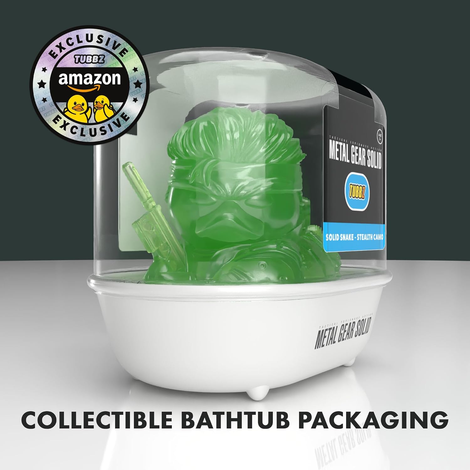 - Coffret de présentation - livré dans une boîte de présentation en forme de baignoire, comportant le logo Metal Gear pouvant être empilé sur d’autres TUBBZ.