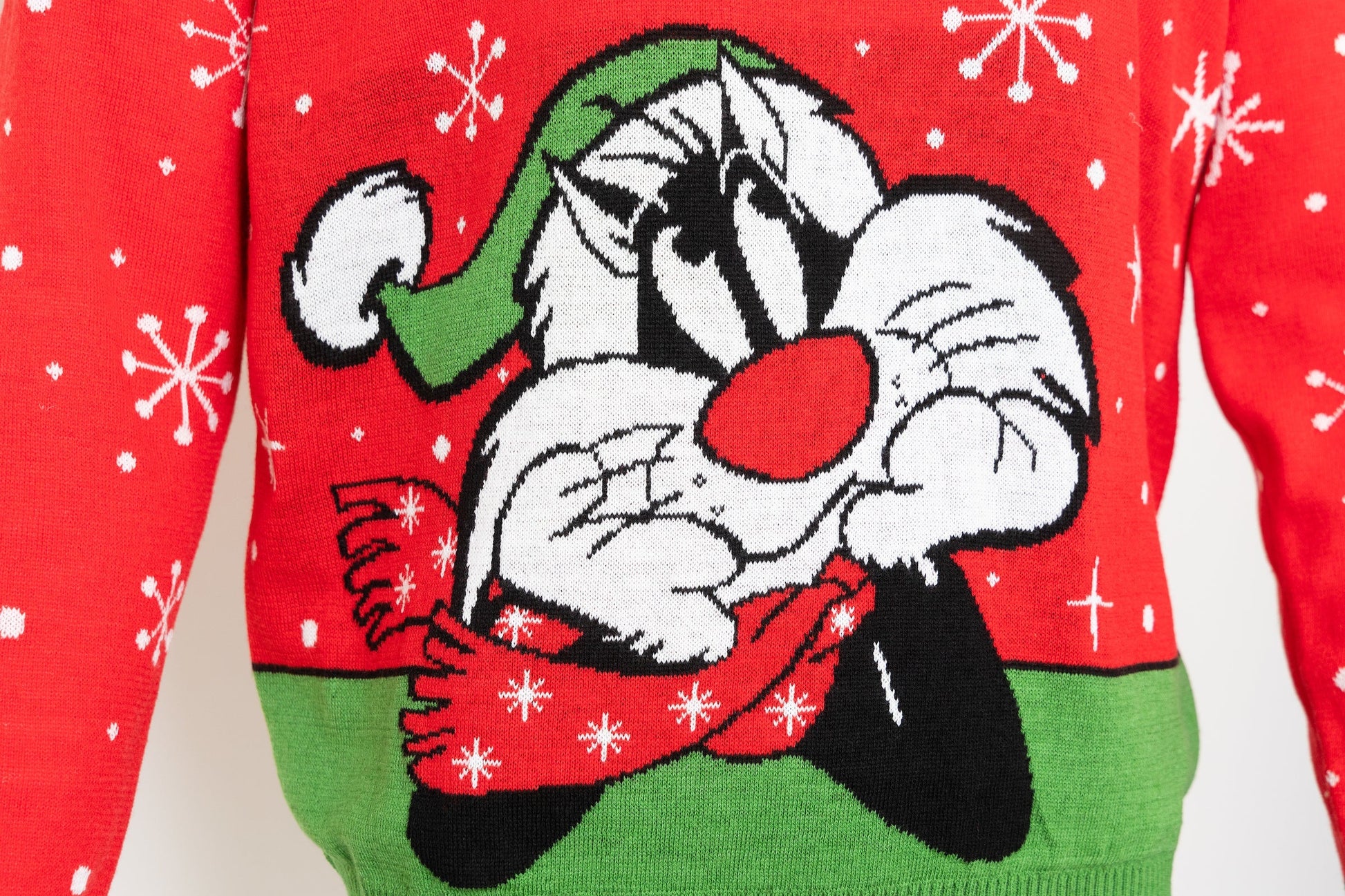 Titi et Grosminet sont en pause pour se poursuivre les uns les autres et se détendre sur ce fantastique nouveau cavalier de Looney Tunes, peut-être pour Noël, seuls ils seront les meilleurs amis. Ce pull festif est un incontournable cette saison en rouge glorieux avec un design de flocon de neige entourant ces deux légendes de dessins animés.