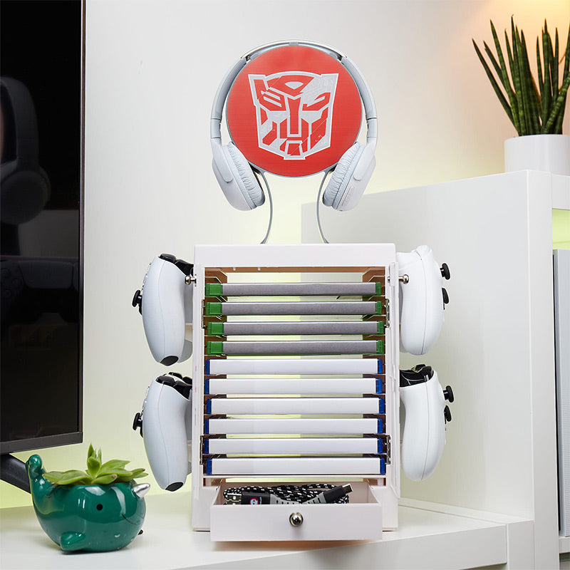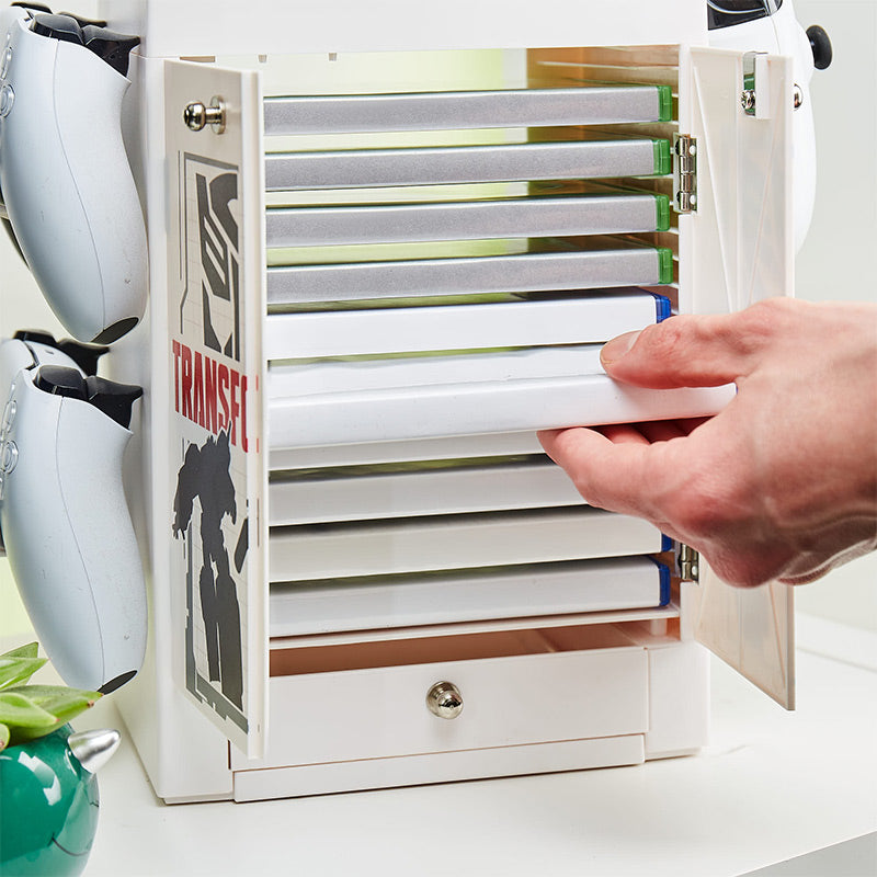 Ce casier de jeu Transformers est définitivement plus qu'il n'y paraît ! Le moyen idéal pour organiser vos jeux et accessoires, ce casier peut contenir jusqu'à 10 de vos jeux Xbox One/Xbox Series X|S, jeux PS4/PS5 ou films préférés. Le casier dispose également d'une tonne d'espace pour ranger tous vos éléments essentiels de jeu, qu'il s'agisse de contrôleurs, de câbles ou d'autres accessoires.