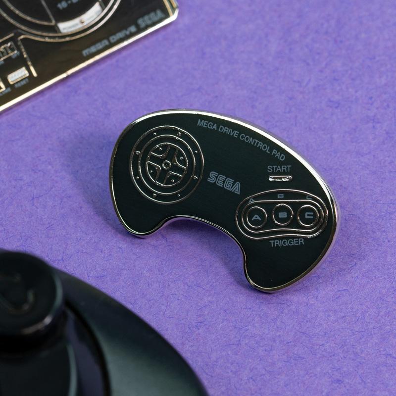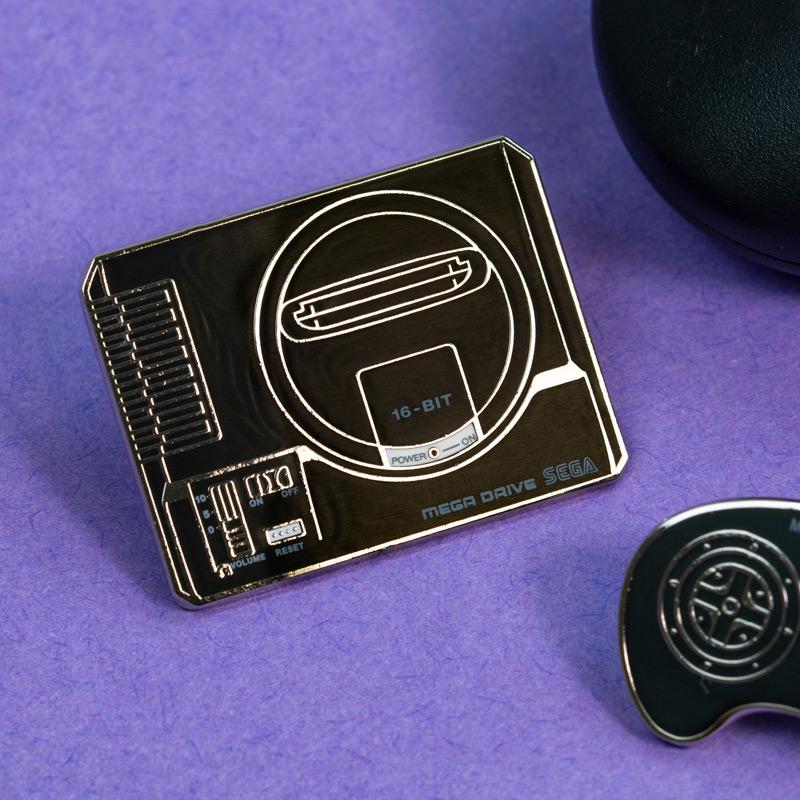 - Deux broches métalliques en émail dur de qualité supérieure avec une finition brillante avec console Mega Drive et conceptions de contrôleur sur une carte de support.