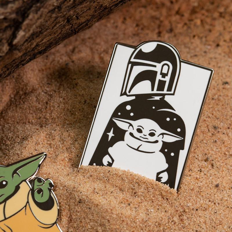 - Deux épingles en métal émaillé dur de qualité supérieure avec une finition brillante avec des motifs «Snack Time» et «Baby Yoda aka The Child» sur une carte de support.