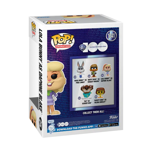 Habillée comme votre fashionista préférée qui résout les mystères, Lola Bunny, dans le rôle de Daphne Blake, prend la pose, les mains sur les hanches, prête à rejoindre votre collection Funko et à vous aider à trouver votre prochain indice !