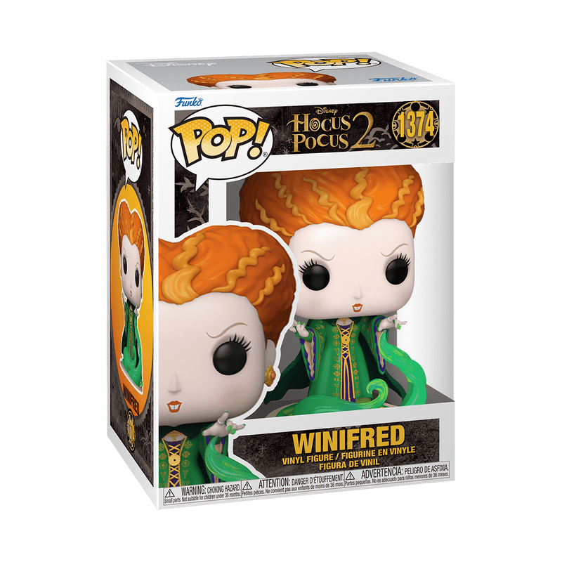 Pop! Winifred Sanderson a été réanimée et est de retour pour vous envoûter ! Réunissez-la avec ses sœurs pour une nuit de hijinks hilarants alors que ces sorcières projettent de rendre leur retour permanent avant que la bougie de la flamme noire ne s'éteigne ! Amusez-vous avec cet ajout envoûtant à votre collection Hocus Pocus 2 ! La figurine en vinyle mesure environ 4,3 pouces.