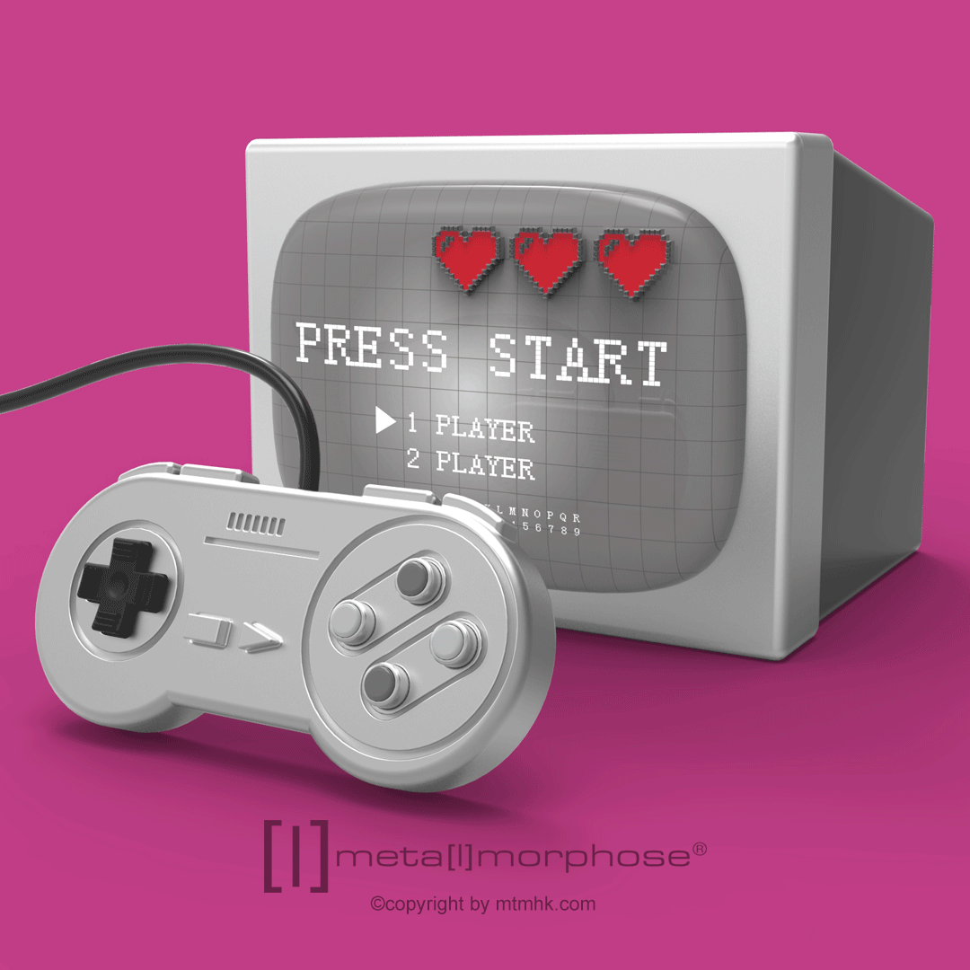 - Matt Chrome Game Controller avec époxy + charm Cœur Pixel Rouge