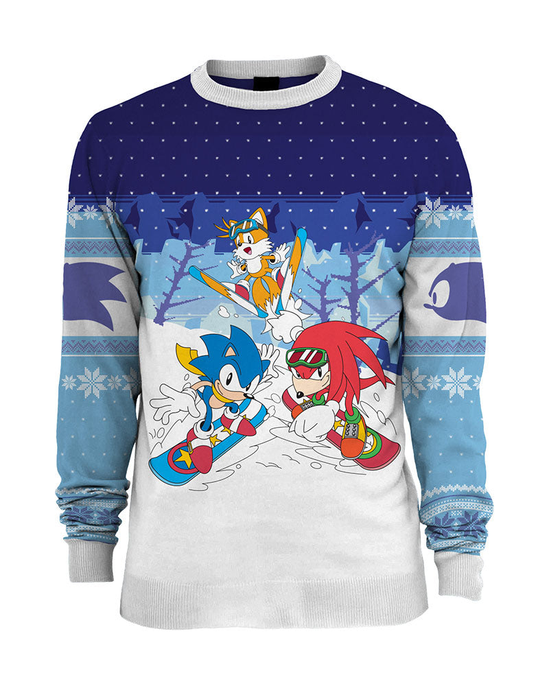 Sonic et ses amis ont l'air super cool dans le meilleur des cas, mais lorsqu'ils sont bien habillés et prêts pour l'hiver, ils sont à leur meilleur ! Ce pull de Noël officiel de Sonic the Hedgehog présente Sonic, Knuckles et Tails sur des snowboards et des skis sur un pull « laid » tricoté très festif. Si vous êtes un fan de Sonic, c'est la tenue de Noël qu'il vous faut !