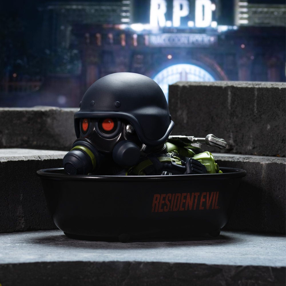 - Coffret de présentation - livré dans une boîte de présentation en forme de baignoire, comportant le logo Resident Evil et pouvant être empilé sur d’autres Tubbz .