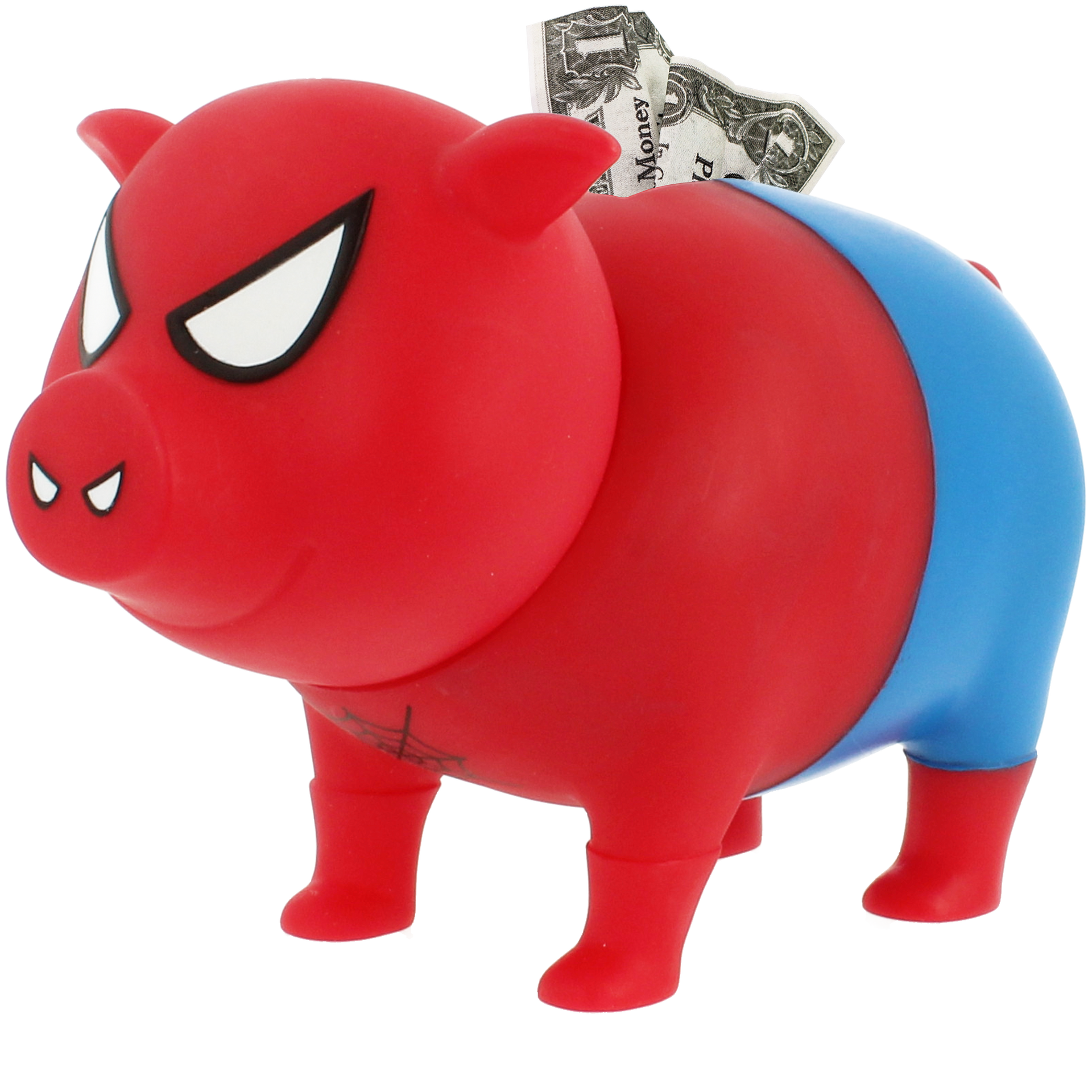 Tous ceux qui veulent être un héros méritent une récompense unique pour avoir essayé. Ce Cochon BIGGY Spidercochon devient héroïque par ses vêtements se super héros araignée et sa facilité à collecter de l'argent en tant que tirelire. Le Spider-Cochon est donc le porte bonheur parfait pour les actions audacieuses et les petits héros qui aiment marcher au plafond.