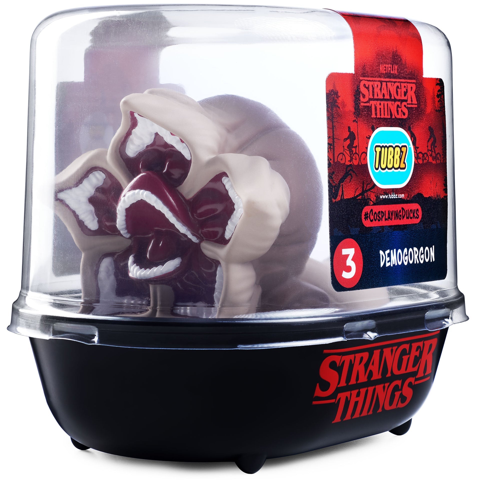 - Coffret de présentation - livré dans une boîte de présentation en forme de baignoire, comportant le logo Stranger Things pouvant être empilé sur d’autres Tubbz .