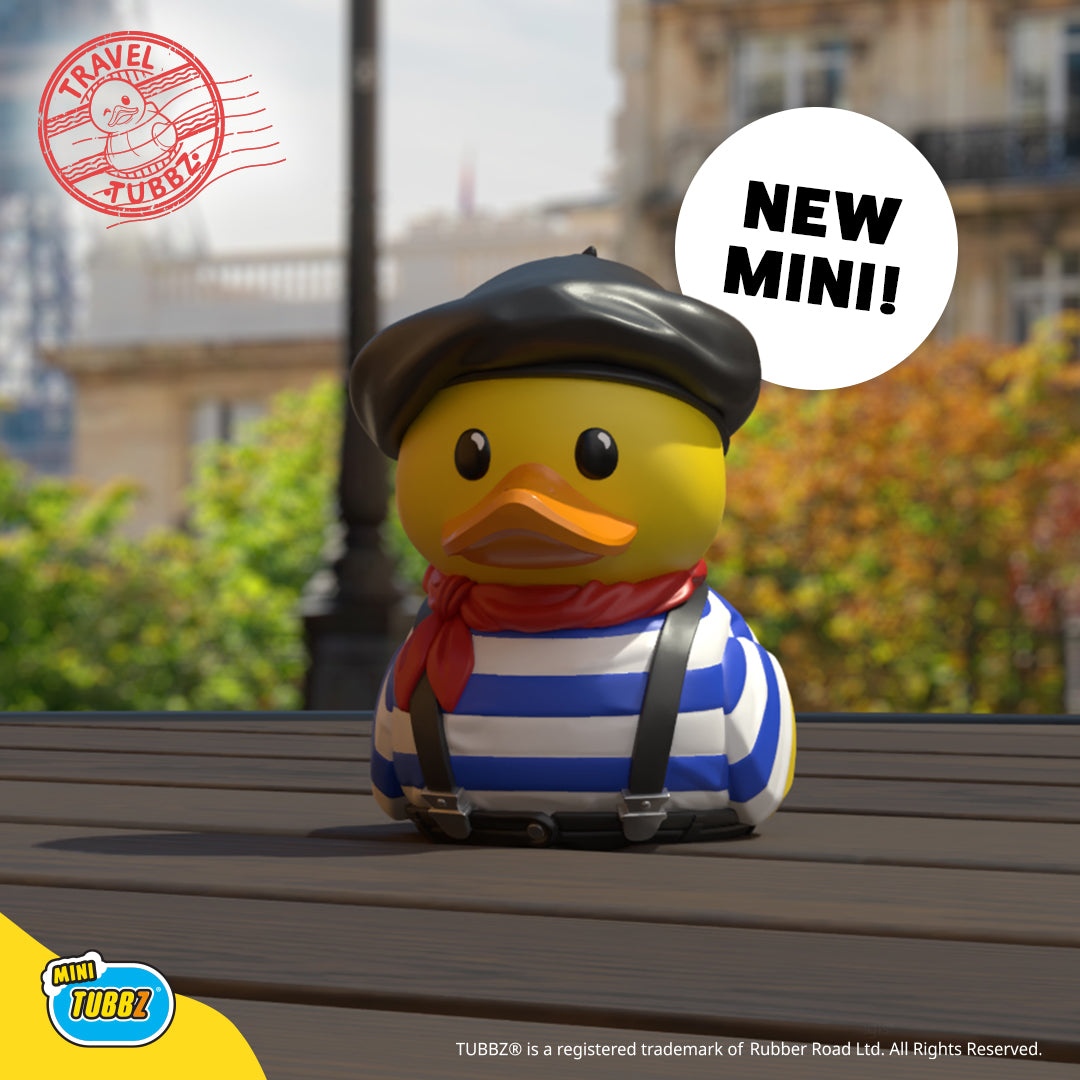 Oh la la ! Ce Mini TUBBZ apporte une touche française à votre collection. Vêtu d'un élégant béret noir, d'un élégant foulard rouge et d'une chemise rayée bleu et blanc classique, le Mini TUBBZ français est le symbole ultime du cool sans effort. Que ce soit pour siroter un expresso imaginaire ou simplement pour afficher une allure très sophistiquée, ce petit Parisien est toujours prêt à être exposé. Niché dans une mini baignoire thématique, c'est l'objet de collection original idéal pour les amoureux de la France, ou pour tous ceux qui apprécient un canard avec un je-ne-sais-quoi indéniable !